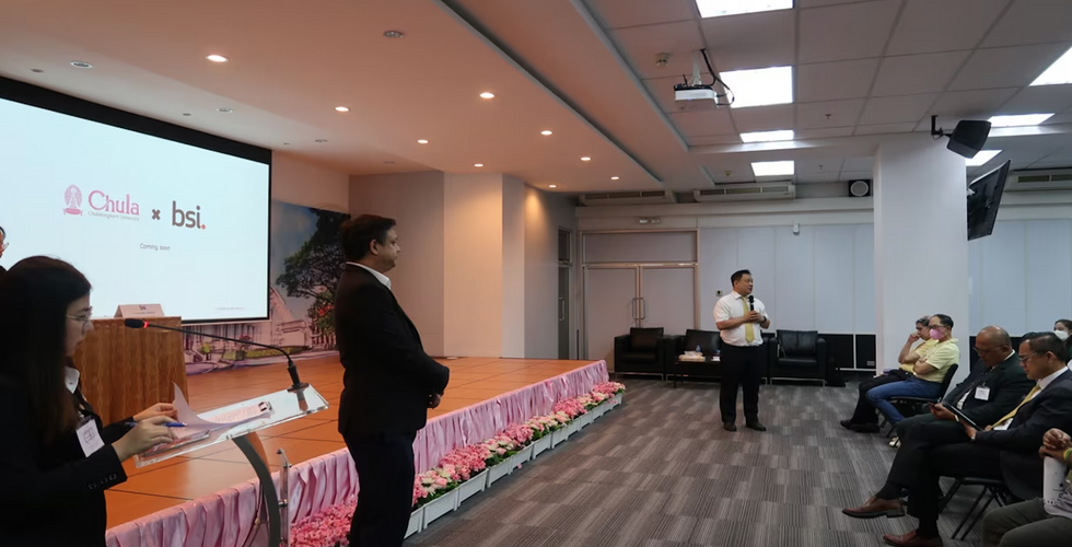 สำนักบริหารวิจัย ร่วมกับศูนย์บริการวิชาการแห่งจุฬาลงกรณ์มหาวิทยาลัย (Chula Unisearch) และสถาบันมาตรฐานอังกฤษ (บริษัท บีเอสไอ กรุ๊ป) ในการจัดเสวนา 4th Lunch Talk “Increase Human Capital : Challenges in Transition toward Net Zero Ambition” เมื่อวันที่ 18 มีนาคม 2567 ณ ห้องประชุม 201 ชั้น 2 อาคารวิจัยจุฬาฯ จุฬาลงกรณ์มหาวิทยาลัย